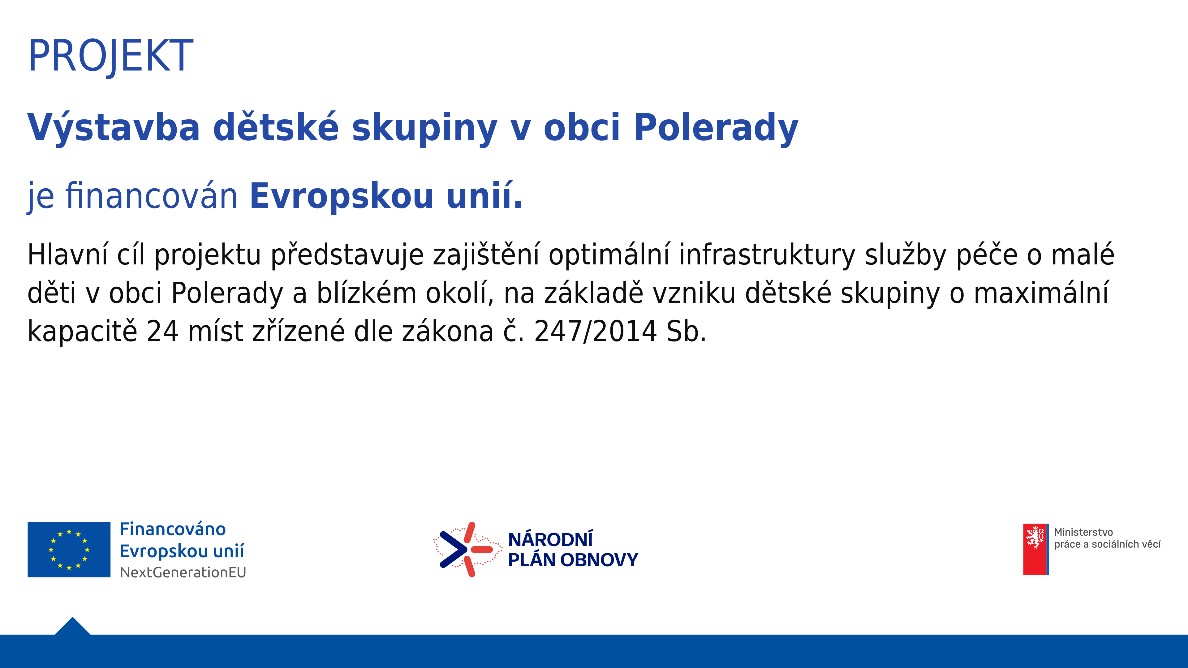 projektu bude výstavba objektu pro provoz dětské skupiny v obci Polerady o